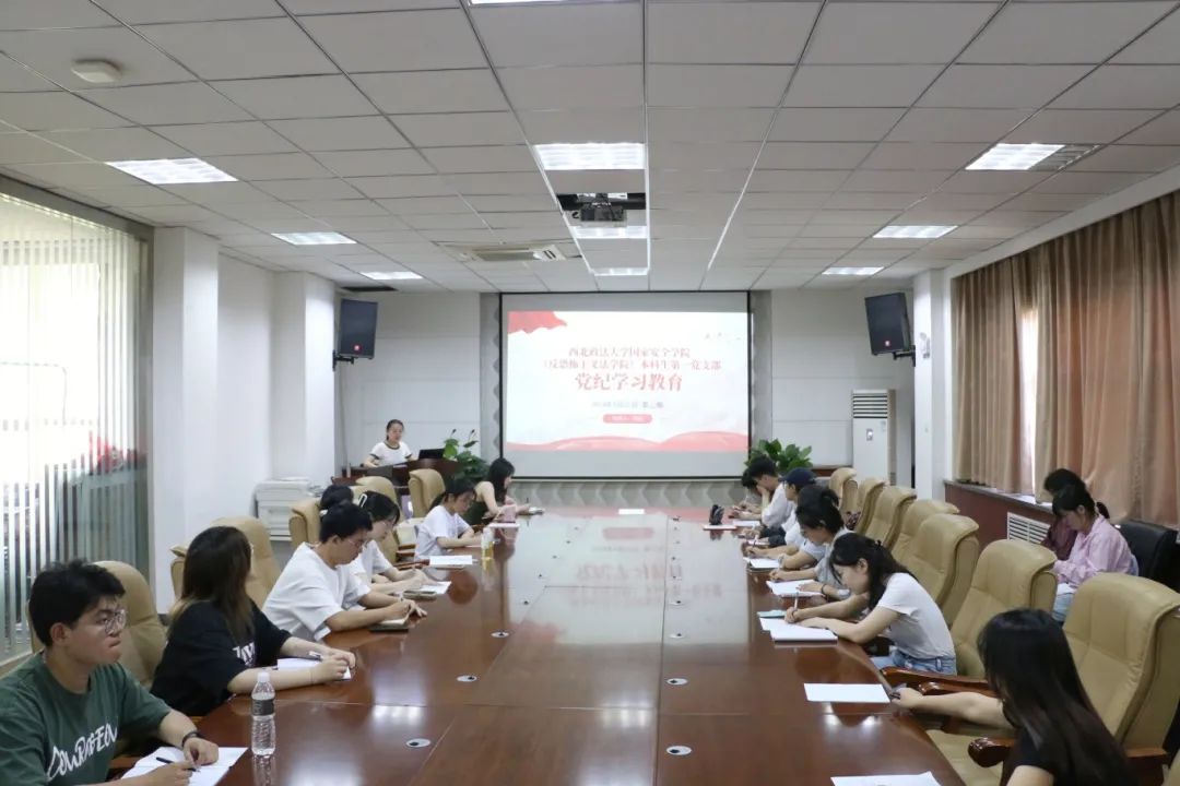 为进一步加强党员纪律教育,深入学习习近平总书记关于党纪学习教育的重要讲话和重要指示精神,动画疯 (反恐怖主义法学院) 于5月22日在学院会议室召开党纪党规学习教育专题学习。会议由易晓同学主讲,第一党支部全体党员参加。