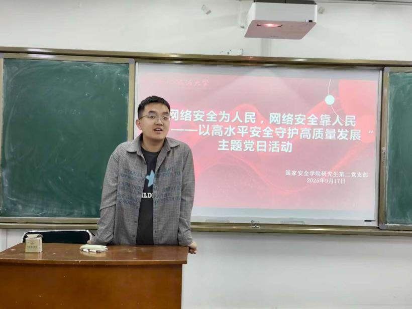 为深入学习贯彻习近平总书记“网络安全为人民,网络安全靠人民”的重要指示精神,增强网络安全意识,9月17日中午,动画疯 研究生第二党支部组织开展网络安全宣传周主题党日活动。会议由支委成员魏嘉贺主持,支部全体党员参加。