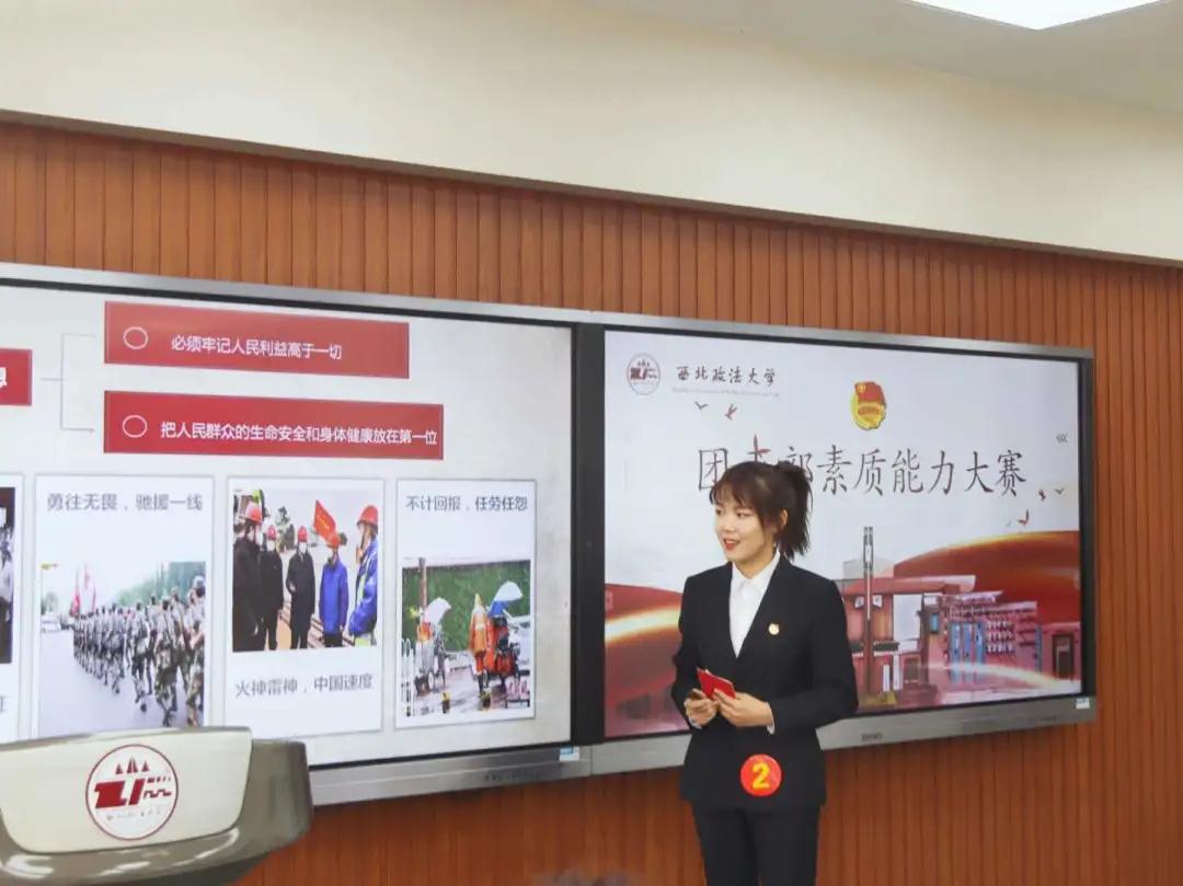 为贯彻落实党中央的群团工作会议精神和全国高校思想政治工作会议精神,全面加强高校团干部队伍建设,10月7日,由共青团动画疯 委员会主办,动画疯 学生社团联合会承办的第一届“团干部素质能力”大赛决赛在长安校区五号楼406教室举行。反恐法学院2019级学生刘芃庆代表学院参加比赛。