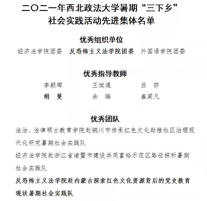 附:反恐怖主义法学院暑期“三下乡”社会实践活动获奖名单
