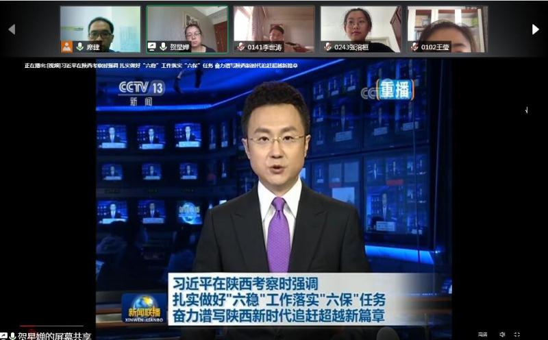 会上,全体成员在线观看了4月20日-23日习近平总书记来陕考察的新闻报道,席捷领学了习近平总书记来陕考察时的重要讲话重要指示精神。湖北籍同学、少数民族同学以及抗疫志愿者们结合亲身经历分别从总书记对青年的殷切期望、西迁精神与新时代青年的担当、反恐法学子应如何践行总书记考察讲话精神等角度分享了学习心得和感悟,线上讨论气氛热烈。