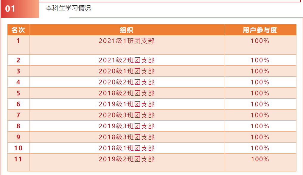 下面让我们一起来看看各班团支部网上团课的学习情况吧