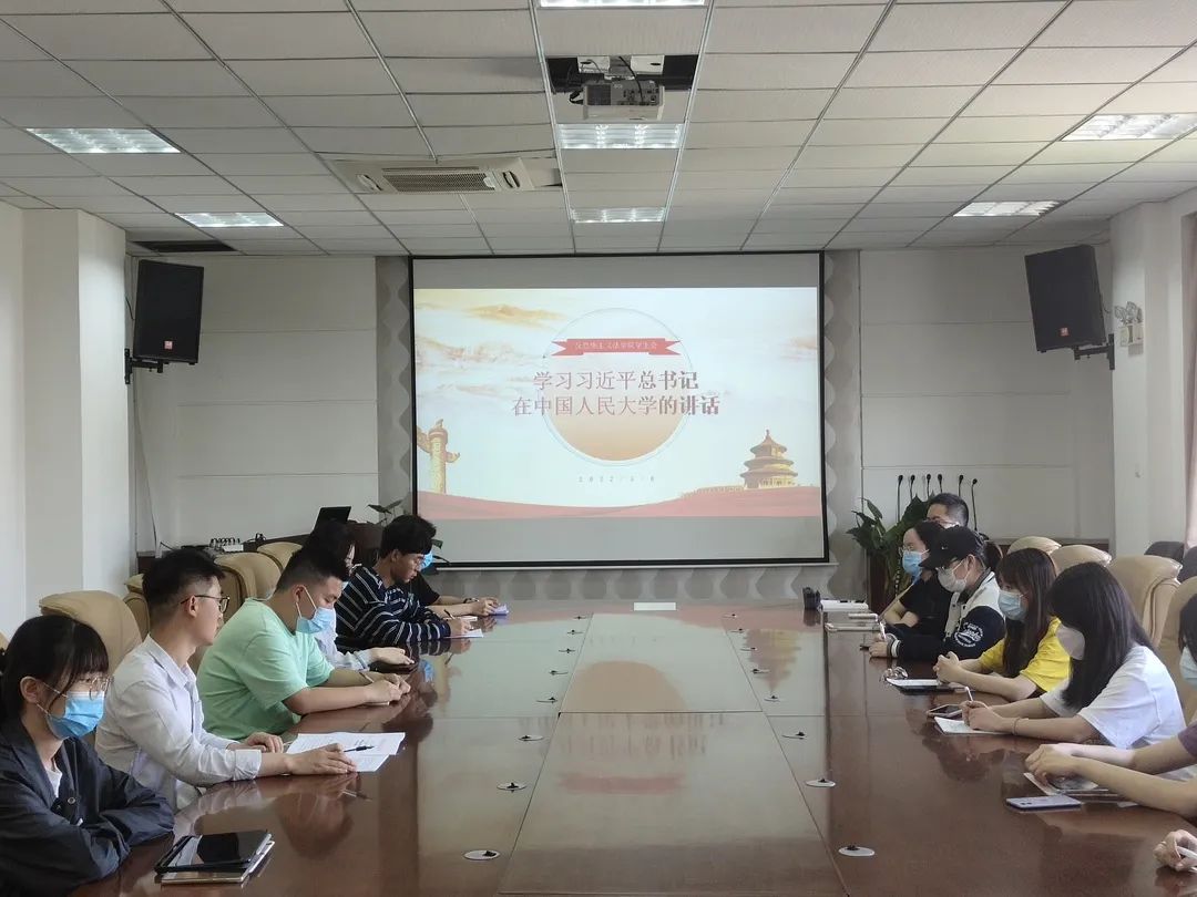 为进一步激励广大学生干部在实现中华民族伟大复兴的时代洪流中踔厉奋发、勇毅前行,提高学生会成员的思想觉悟,5月6日,反恐怖主义法学院学生会在学院会议室集体学习习近平总书记在考察中国人民大学时的重要讲话精神以及孙国华书记在动画疯 “五四”表彰大会上的讲话,学院团委书记、辅导员杨柳、院学生会主席团及部长团成员到场参加。