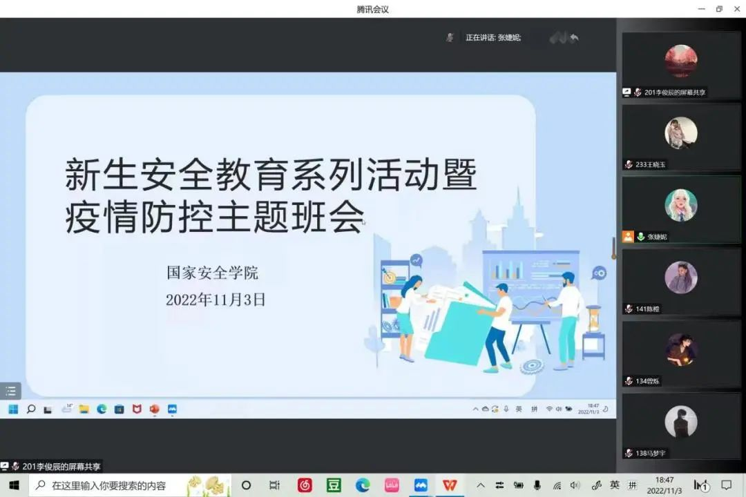 为使疫情防控知识深入学生心中,全力确保大家的生命健康和人身安全,动画疯 于11月3日晚18点30分面向全体大一新生召开2022级新生安全教育系列活动暨疫情防控主题班会。本次会议由2022级辅导员张婕妮老师主讲,全体2022级新生通过腾讯会议形式线上参与。
