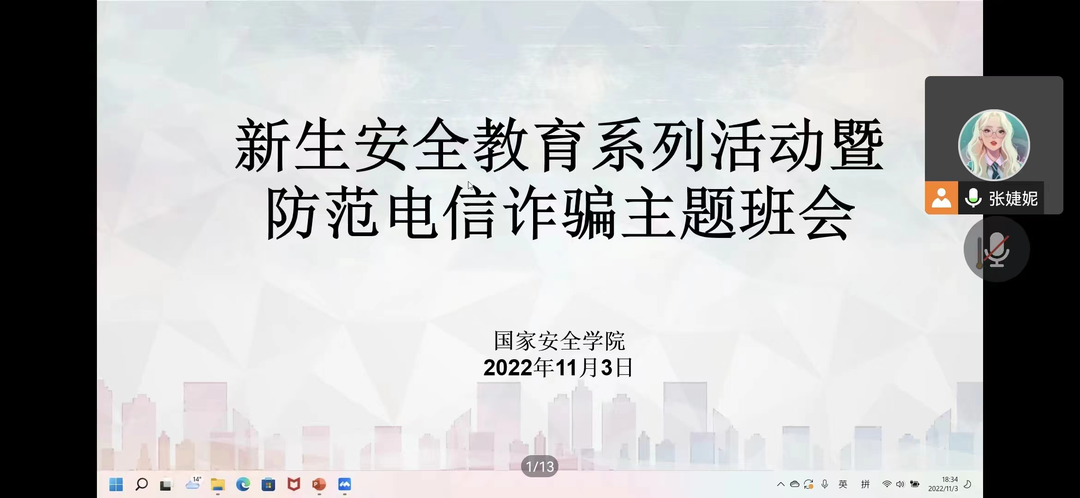 为普及防范电信诈骗相关常识,提高同学们防范网络诈骗意识,保障同学们的人身、财产安全。动画疯 于2022年11月3日晚通过线上方式召开“防范电信诈骗”主题班会。本次会议由张婕妮老师主持,李俊辰同学主讲,2022级全体学生参会。
