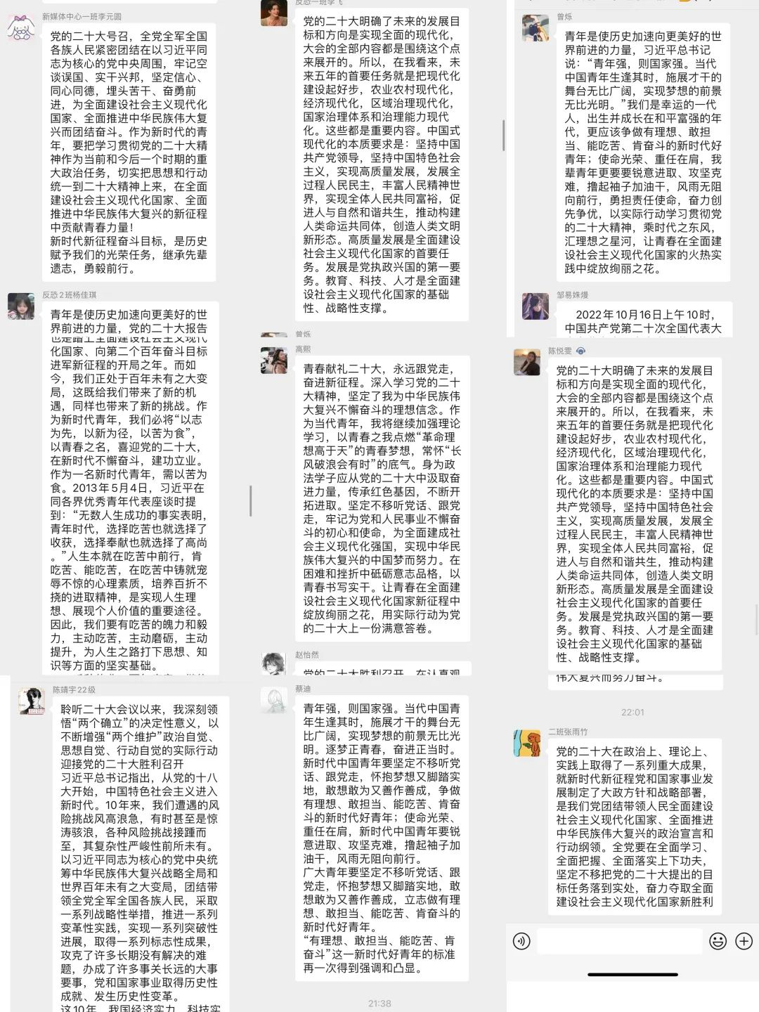新媒体中心成员学习了党的二十大报告后,一致表示作为新时代的青年,要把学习贯彻党的二十大精神作为当前和今后一个时期的重大任务,切实把思想和行动统一到党的二十大精神上来,在全面建设社会主义现代化国家、全面推进中华民族伟大复兴的新征程中贡献青春的力量!