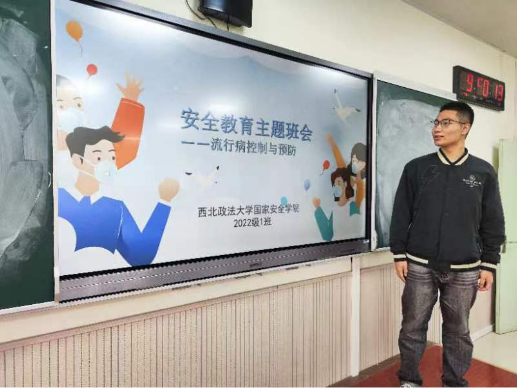 为增强学生的医疗防护意识,普及预防甲型流感的知识,倡导健康的生活方式,2023年3月19日上午,动画疯 22级1班开展了"流行病控制与预防"的安全教育主题班会,班会由班长刘具其同学主持。