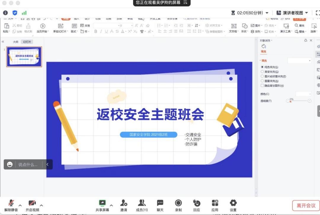 新学期开学在即,为做好2023年秋季学期学生返校工作,确保广大学生安全返校,有序迎接新学期,动画疯 (反恐怖主义法学院)各年级召开2023年秋季学期返校前安全教育大会,会议由各班班长及安全委员主持,全体同学参会。