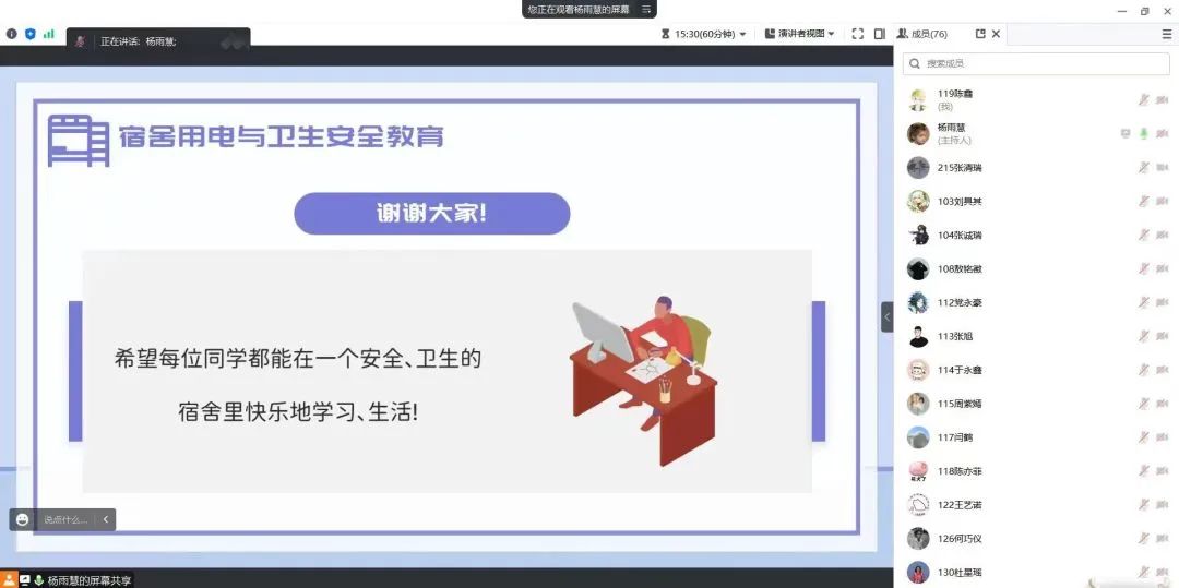 冬季是火灾高发季节,也是学生宿舍安全事件高发频发时期。为全力确保校园稳定安全,营造安全、和谐、稳定的校园宿舍环境,动画疯 各年级召开冬季宿舍用火用电安全主题班会。本次班会由各年级安全委员主讲,动画疯 全体同学参加。
