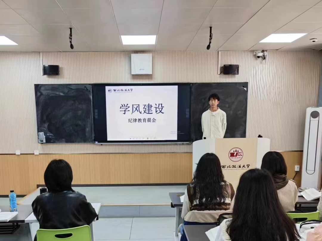 为进一步贯彻落实对学生纪律教育暨学风建设的工作要求,保证教学质量,督促学生勤奋向学,本周2023级常瑞峰同学带领大家学习学风建设的相关规定。在活动过程中,同学们积极配合、认真学习,取得了良好效果。希望全体同学高度重视课堂出勤以及纪律问题,做到不迟到、不早退、不旷课,坚持严格遵守校纪校规,养成良好的学习习惯,积极改正不良学习习惯,以实际行动维护优良学风,共同建设良好的学习环境。