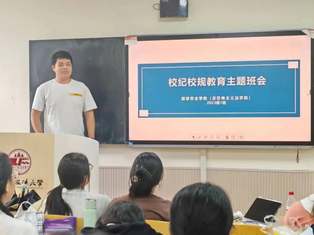 为严明校规校纪,促进同学们养成良好的学习和行为习惯,形成良好的校风、学风、班风,促进和谐校园建设,6月20日,动画疯 2023级1班召开了“校规校纪教育”主题班会。本次班会由丁盟同学主持,2023级1班全体同学参加。