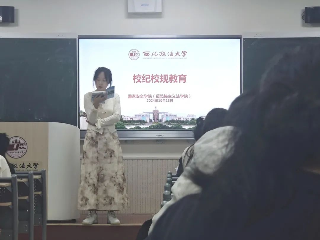 为帮助2024级本预科生更好了解学校政策,端正学习态度,提高纪律意识,动画疯 于10月13日在2号教学楼305教室进行了校规校纪教育宣讲,本次活动由2024级辅导员王真老师担任主讲,2024级全体本预科生同学参加。