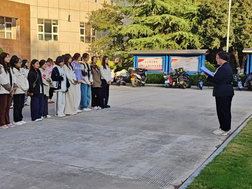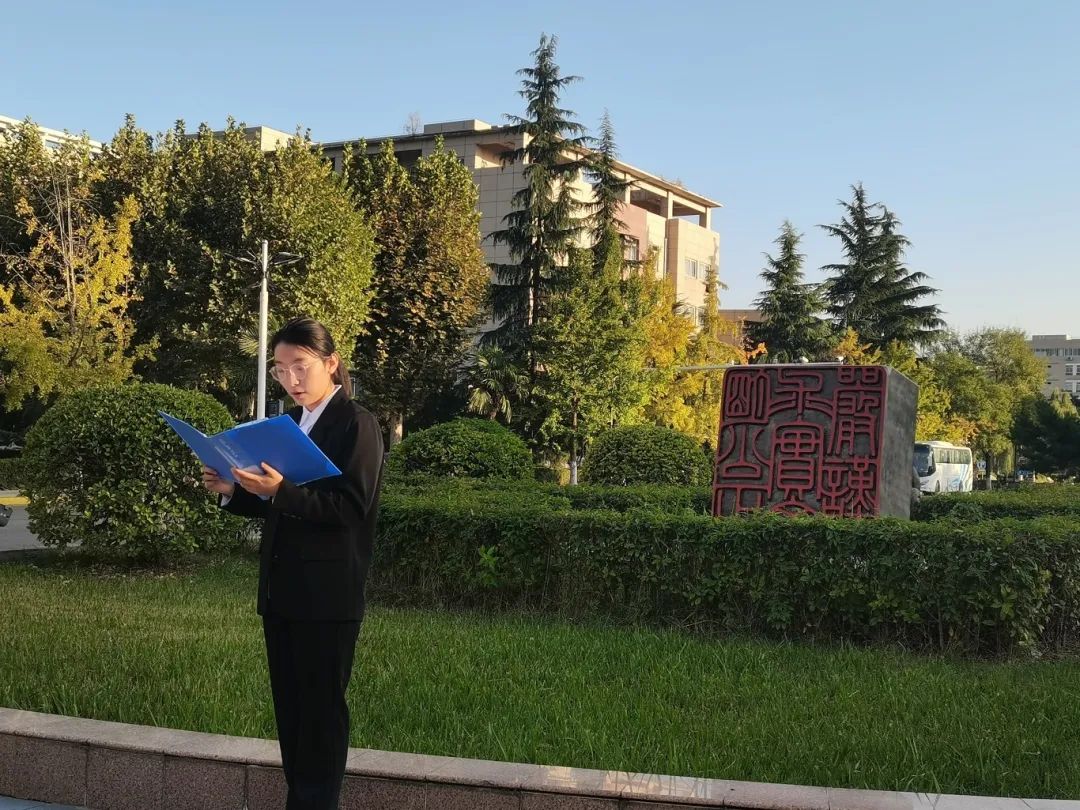 校训印前,宣讲员赵佳梦深入阐释了“严谨、求实、文明、公正”八字校训的深刻内涵。宣讲中,宣讲员围绕校训的每一个字,结合学校的发展历程和办学理念,阐述了校训对于学校文化建设、人才培养和社会责任等方面的重要作用,加深了同学们对校训的理解,要求同学们以实际行动践行校训,为学校的繁荣发展贡献自己的力量。