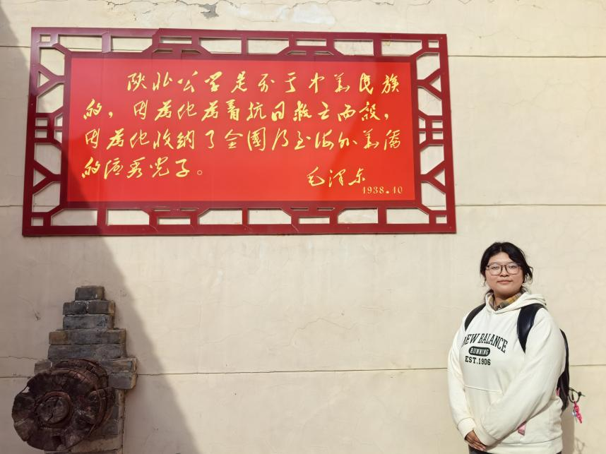 踏入陕北公学旧址,站在简陋的教室中,我仿佛能听到先辈们于窑洞内的激烈讨论,那是知识与革命理想的交融。随后,我们来到马兰革命纪念馆,逐件探知馆中物件背后的故事,它们默默承载着先辈们于抗战时期的心血与奉献,那是热血与牺牲铸就的不朽功勋。重走这陕公路,我深刻领悟到先辈们坚定的信仰与无畏的勇气。他们在艰苦中开辟希望,在困境中奋勇前行。如今,我们应接过这神圣使命,传承圣地之光,以拼搏之姿,让红色精神在新时代熠熠生辉,书写新的华章。