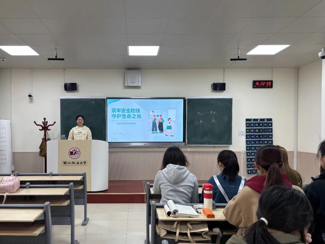 方艺同学详细讲解了租车自驾风险、攀爬野山风险、户外探险风险以及野外游泳风险,使同学们认识到日常生活中的潜在风险,深刻理解安全事故的危害。保障校园安全不仅是学校的基本责任,更是每一位同学应该关注的重要问题。会后,同学们表示要将所学的安全知识转化为实际行动,增强自我保护能力,将安全意识内化于心、外化于行,共同维护平安和谐的校园环境。
