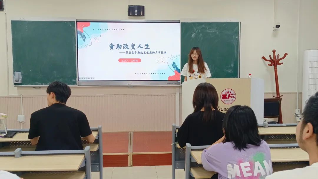 为展现资助政策对学生成长的重要助力,传递励志正能量,动画疯 于6月3日开展“资助改变人生——那些靠资助政策逆袭的真实故事”主题宣讲活动。本次活动由资助政策宣讲团成员王斯雨主讲,2023级2班全体同学参加。