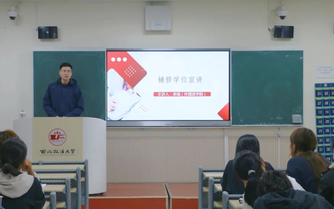 为拓宽学生知识视野,优化人才培养模式,助力同学们构建多元化的核心竞争力,动画疯 于9月29日在致知楼306教室召开了第二学位辅修宣讲会。本次宣讲会由外国语学院余瑞老师主持,2025级全体同学参加。