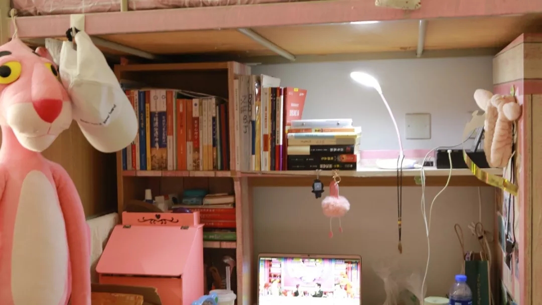 学生对生活的热爱和勤俭朴实的宿舍文化;热爱篮球、喜好动漫的同学的海报也映入了我们的眼帘,将自己的兴趣融入到宿舍装扮中,也是宿舍特点的一种体现;整齐划一的床帘,和井然有序的书籍,是他们严谨认真、一丝不苟的宿舍文化的体现。大二的女生宿舍也同样充满了趣味。心灵手巧的同学们对宿舍进行了改造:有贴简约城市风壁纸的;有贴粉系少女风墙纸的;有在书桌前贴着自己临摹的字帖,培养自身的文化素养的;还有在书桌前贴着警语“但行好事,莫问前程”,不断砥砺自己前行的……