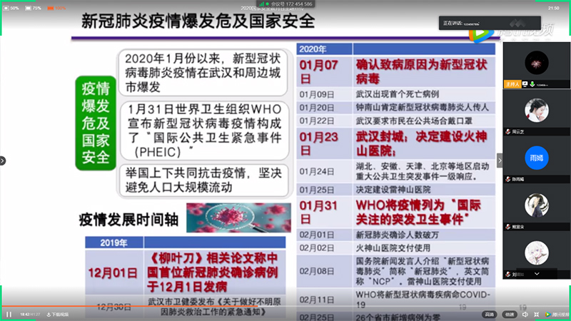 4月14日下午,由教育部主办的“千万学生同上一堂国家安全教育课”在腾讯视频等平台开讲,公共安全领域专家、中国工程院院士范维澄为全国大学生讲授《总体国家安全观视角下的疫情防控》。