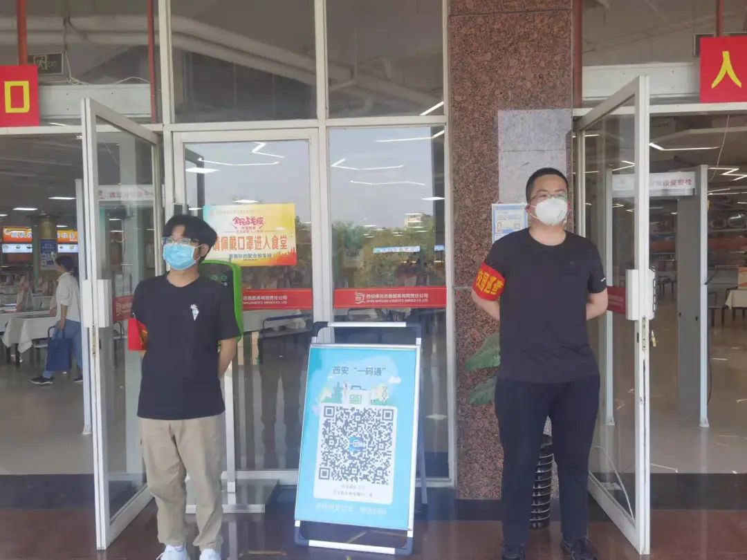 在学院广泛动员、组织下,同学们积极投身于志愿服务工作中。根据学院的安排,同学们围绕生活服务,精准对接校园需求,提前在用餐高峰期前到达校园食堂、超市,认真有序完成执勤工作,有效维护食堂、超市秩序,叮嘱进入食堂的师生戴好口罩、扫健康码;贴心提示师生取餐时保持一米安全距离,保障就餐秩序,确保学校各项防疫政策的严格落实。