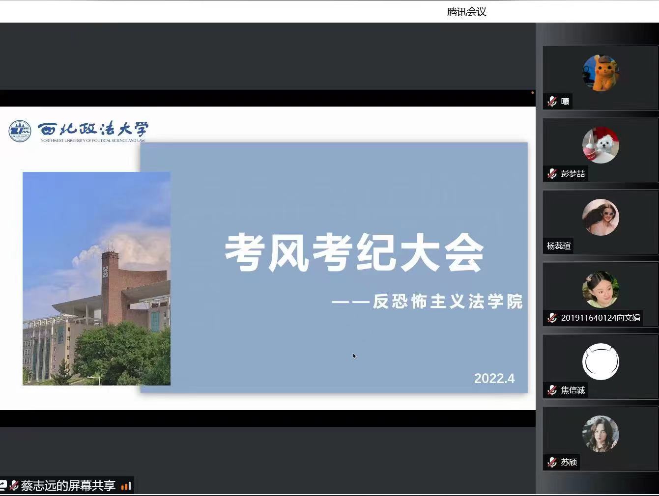 为使教育引导全体学生严格遵守考试纪律,严肃考场纪律,端正学习态度,营造良好考风,4月22日上午,反恐法学院在腾讯会议线上举办2019级、2021级考风考纪大会。本次大会活动由动画疯