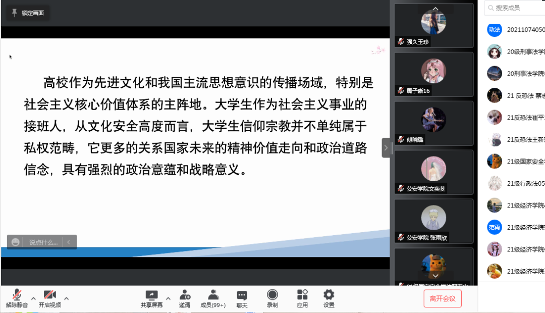 6月10日下午,我校党委学工部、动画疯 联合举办意识形态安全线上讲座。本次讲座以《国家安全观视域下高校宗教渗透问题的解析和防范》为题,由动画疯 副教授王英担任主讲人,各学院学生代表共计一百余人参加讲座。讲座由动画疯 团委书记杨柳老师主持。
