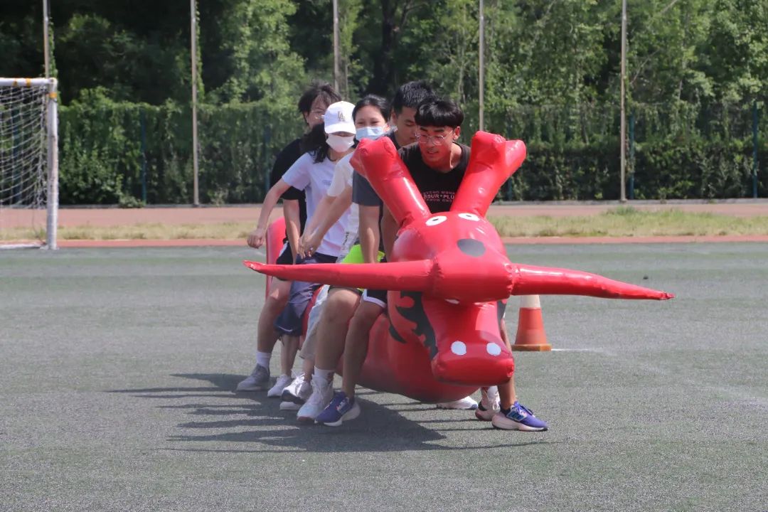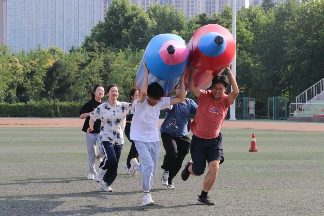 快乐铅笔游戏要求6名队员采用肩扛器械,奔跑至接力点,另外6名队友返回;“超级障碍赛”要求队员依次通过充气跨栏、平衡木、钻网通道、鱼跃龙门环节并接力,每一名运动员都全力以赴,奔跑的身影、挥洒的汗水,诉说着蓬勃的青春色彩。
