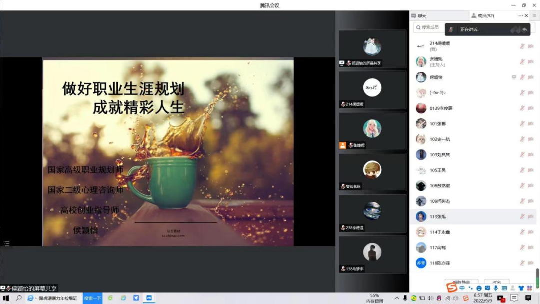 为帮助大学新生尽快适应大学生活,明确职业生涯规划的定义和方向,帮助新生树立目标,动画疯 于9月9日上午9点整在腾讯会议召开2022级新生职业生涯规划与心理健康教育讲座。动画疯 党委副书记、副院长侯颖怡副教授担任此次讲座主讲人,动画疯 2022级辅导员张婕妮老师主持本次会议。本次讲座以“做好职业生涯规划,成就精彩人生”为主题,分别从大学生活的准备、职业生涯规划的定义、职业生涯规划的必要性以及途径等方面出发,帮助大家明确职业发展目标。
