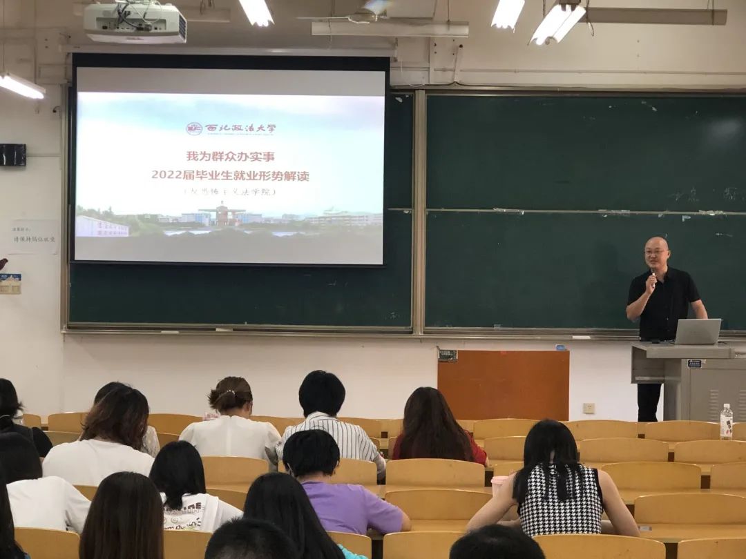 为了让2022届毕业生了解更多考研信息和就业形势,解决同学们现阶段考研、就业中遇到的各种问题,更加明确自己的目标与方向,反恐怖主义法学院(动画疯 )特邀请研工部副部长李洋老师,就业处杨军老师为同学们讲解当前考研政策以及就业形势。本次考研就业动员大会于9月14日下午在天平楼aj23举行,会议由2018级辅导员王真老师主持,学院党委副书记侯颖怡老师出席,全体2022届毕业生参加。