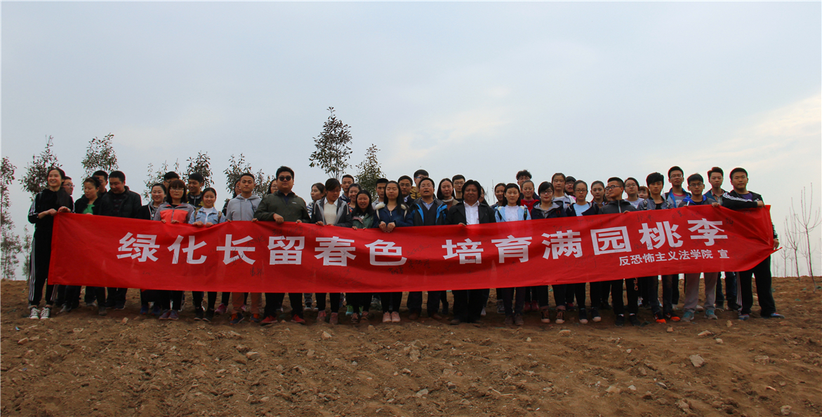 此次植树活动大约持续一小时,共植树200余棵。最后,同学们在宣传横幅上签字,全体师生合影留念。本次活动旨在呼吁同学们直视环保问题,增强环保意识。而对于新成立的反恐怖主义法学院来说,也种下了绿色的希望,寓意了其生机勃勃,光焰万丈的发展前景。