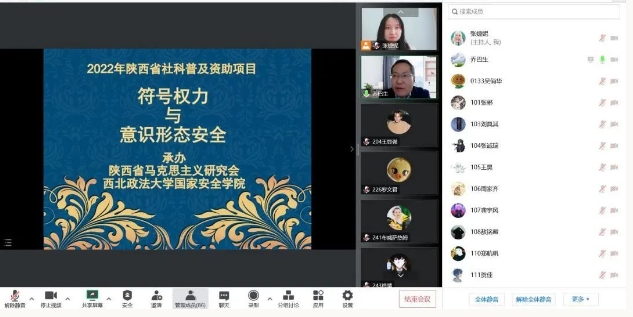 为推动新时代文化安全宣讲进校园,深化学生对意识形态安全的了解,科普新时代国家文化安全知识,根据2022年陕西省社科普及资助项目活动安排,动画疯 于10月18日下午16时通过线上举办第七届民族团结进步宣传月系列活动之新时代文化安全宣讲进校园系列讲座。本次讲座由动画疯 讲师乔巴生老师主讲,2022级辅导员张婕妮老师主持,2022级全体新生参加。