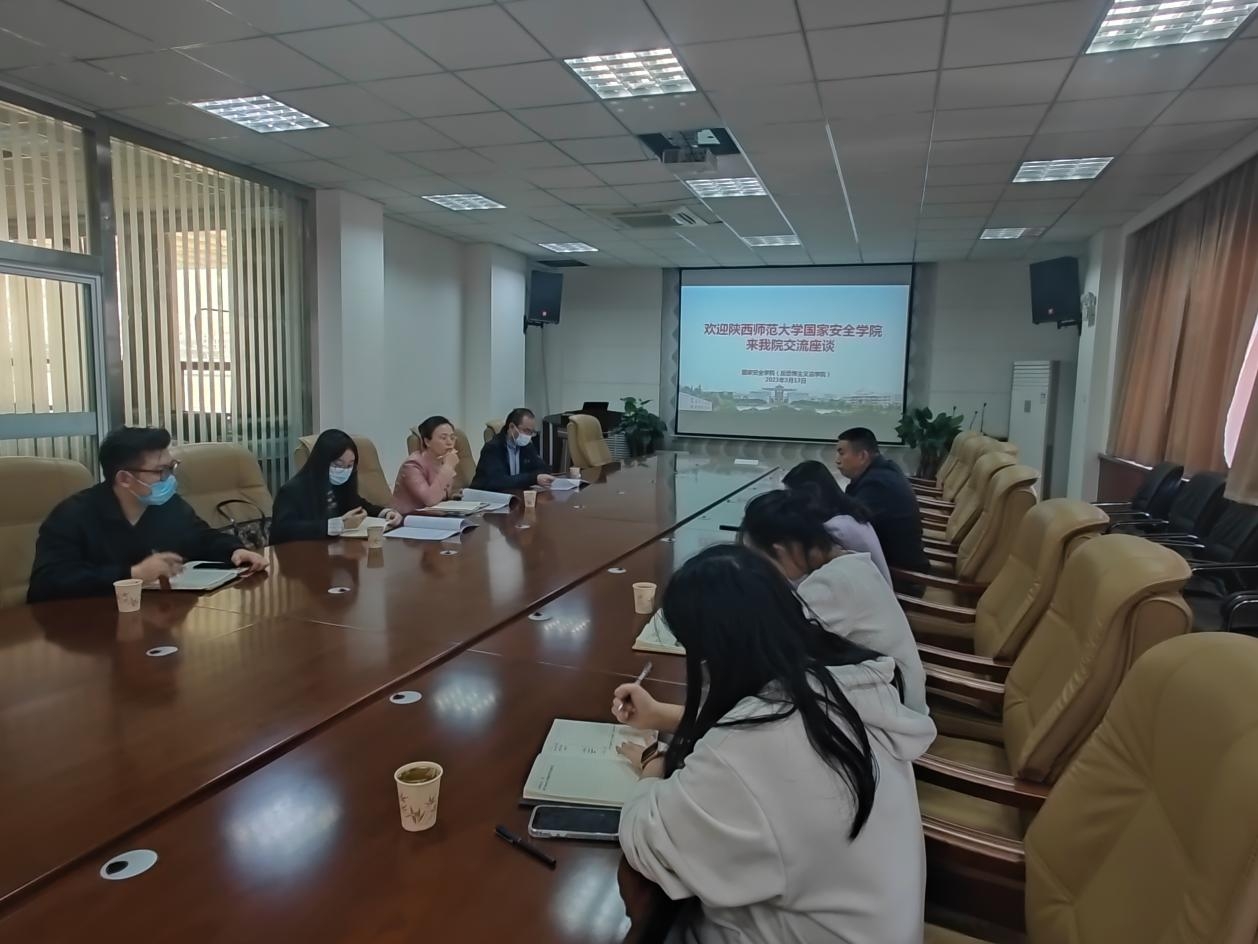 3月13日下午,陕西师范大学动画疯 (政法与公共管理学院)副院长戴均、党委副书记阮小飞及辅导员一行4人来动画疯 访问交流。动画疯 党委书记李政敏、副书记侯颖怡及辅导员参加座谈。