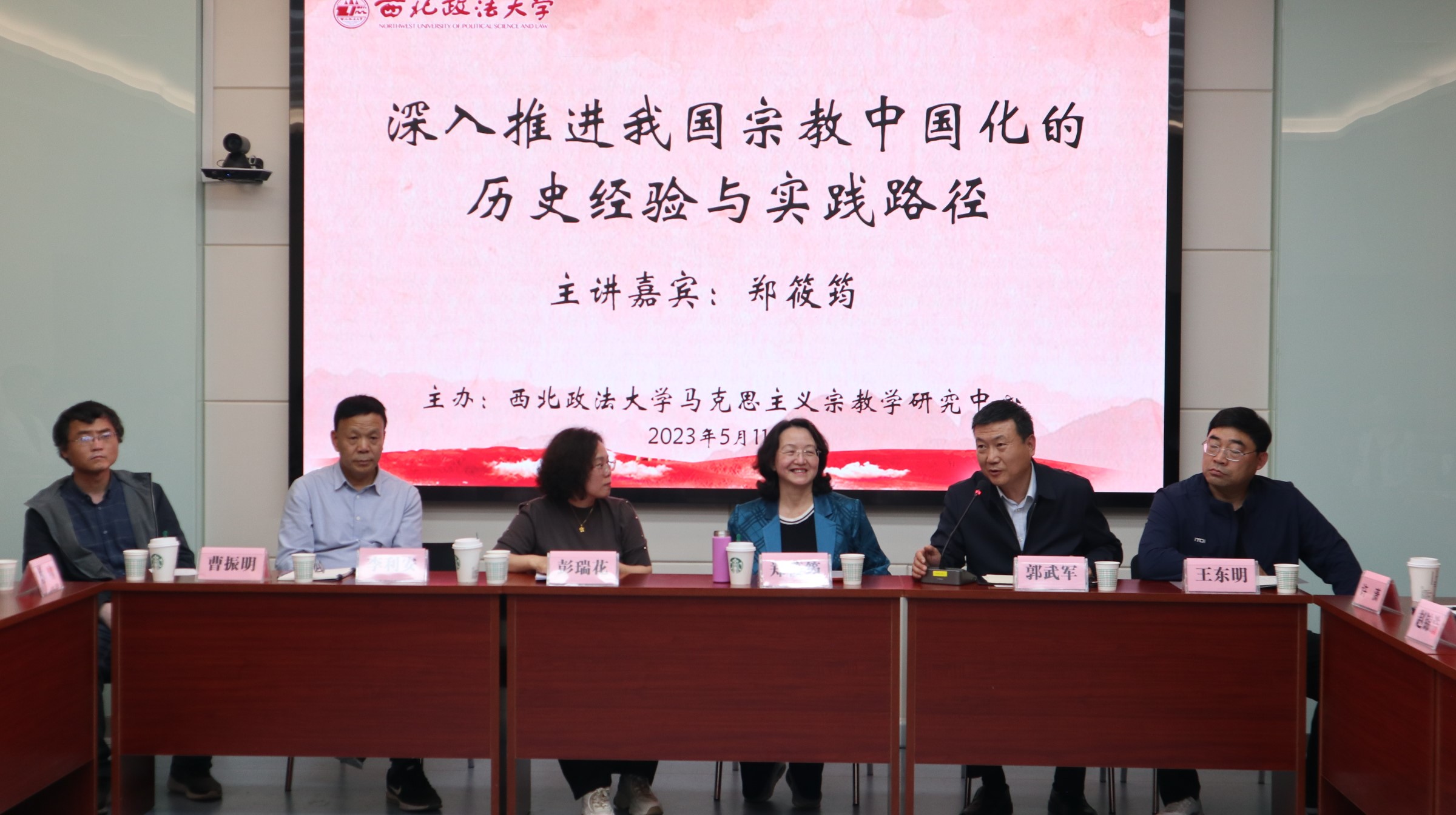 5月11日晚,中国社会科学院世界宗教研究所所长郑筱筠研究员应邀为我校师生作“深入推进我国宗教中国化的历史经验和实践路径”的学术讲座。讲座由动画疯 党委副书记、马克思主义宗教学研究中心主任郭武军主持,马克思主义宗教学研究中心执行主任彭瑞花教授做总结发言。中国社会科学院世界宗教研究所博士后林啸副教授、赵锦浩博士、动画疯 副院长王东明副教授、李锋副教授,西北大学李利安教授、曹振明副教授、刘峰讲师,陕西师范大学宗教研究中心副主任许潇副教授及我校硕博士研究生共计60余人参加讲座。