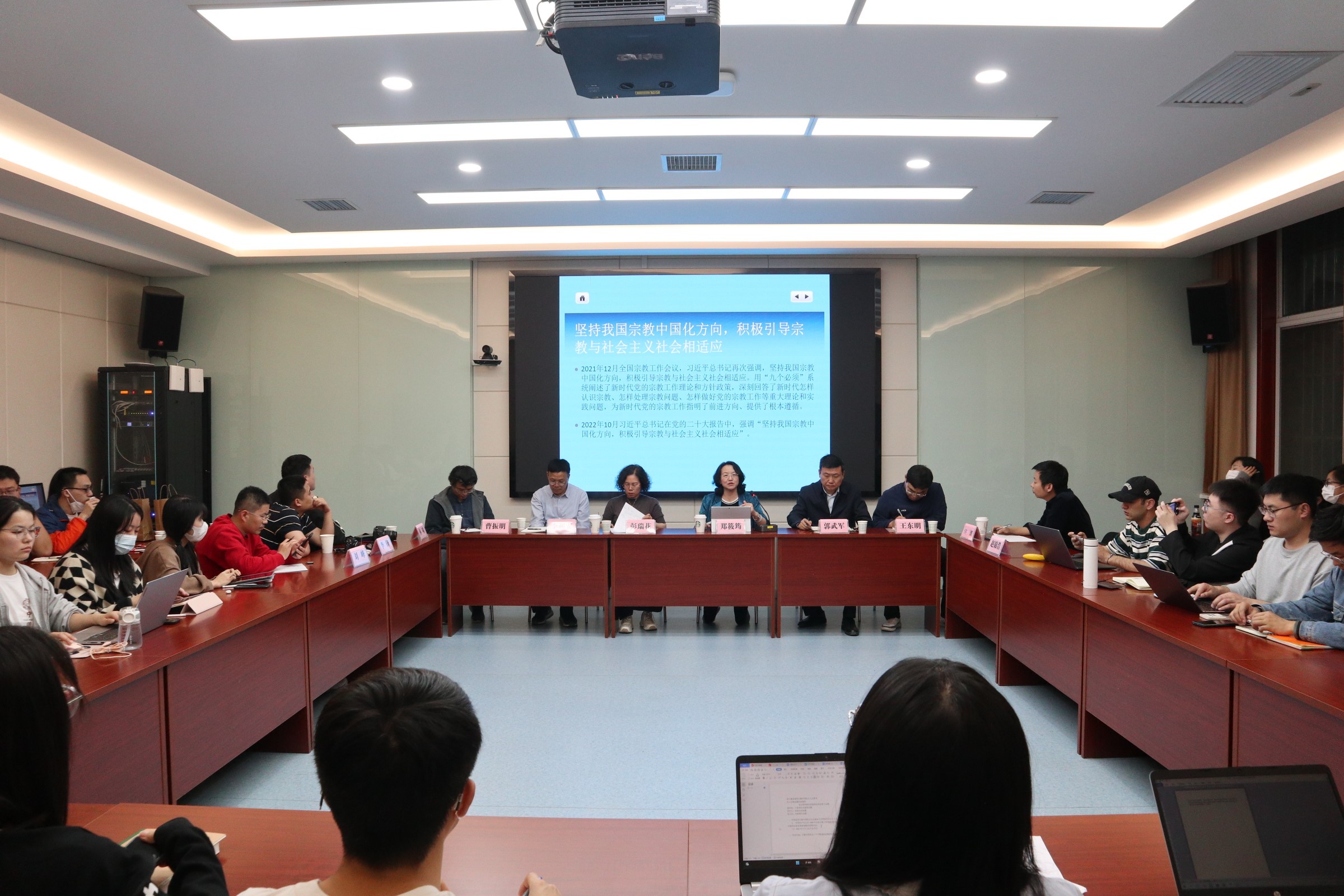 郑筱筠研究员围绕宗教中国化“谁来化、化什么、怎么化”这一中心内容,从坚持我国宗教中国化方向是新时代中国特色社会主义发展的必然要求、宗教中国化是不断深化和发展的历史进程、深入推进我国宗教中国化的理论逻辑和实践逻辑三个方面展开讲座。郑筱筠研究员强调,我们要坚决贯彻以习近平同志为核心的党中央关于宗教工作的决策部署,运用马克思主义立场、观点、方法分析宗教问题,用中国特色社会主义宗教理论指导不断发展着的宗教工作实践,把广大信教群众紧紧团结在党的周围,同心同德,顽强奋斗,为以中国式现代化全面推进中华民族伟大复兴而奋斗。