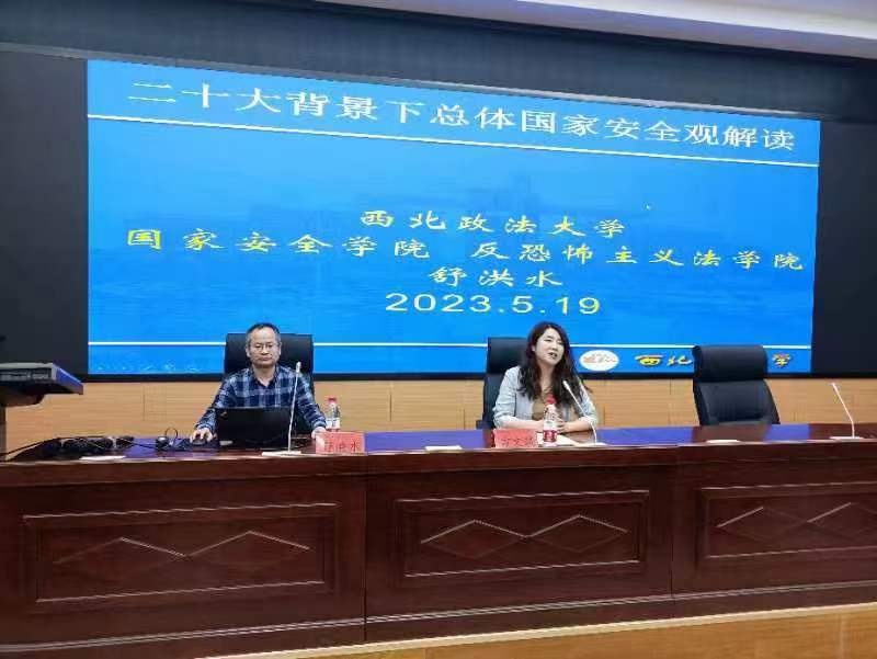 调研组一行采取实地查看资料、举行座谈等方式,全面调研甘肃政法大学国家安全学科建设基本情况,详细了解该校国家安全学科建设亮点。同时,调研组成员与甘肃政法大学国家学院教师代表围绕贯彻习近平新时代中国特色社会主义思想,通过梳理国家安全学科建设发展历程、取得的成绩、存在的问题,尤其针对新生的国家安全学仍存在学科定位性质未达共识、学科理论基础不成体系、学科现实基础不甚完备等问题,进行了探讨。当晚,舒洪水院长以《党的二十大背景下总体国家安全观解读》为题,为甘肃政法大学动画疯 全体师生作学术报告,受到与会师生的一致好评。