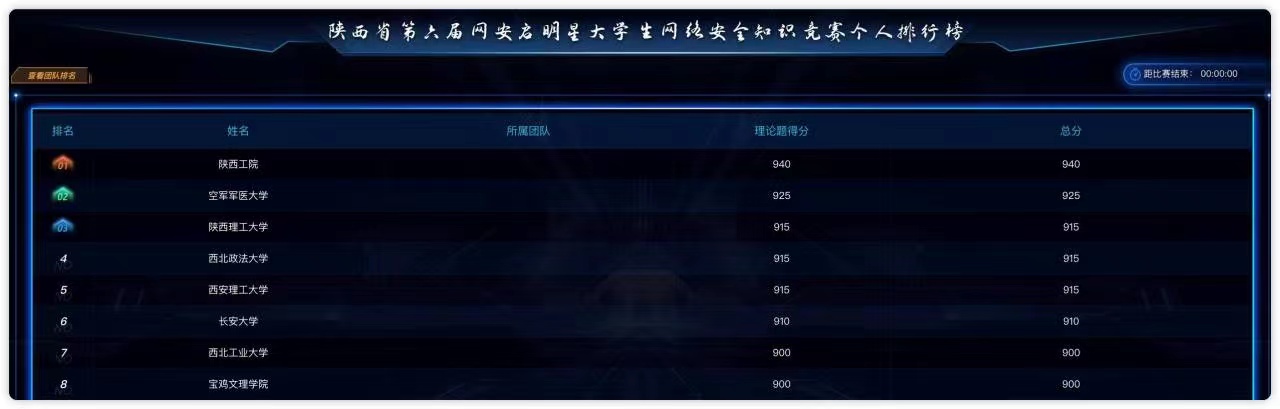9月12日,由4名同学组成的动画疯 代表队来到了竞赛决赛的现场,经过与西北工业大学、西安理工大学、陕西理工大学、陕西工业职业技术学院、中国人民解放军空军军医大学、长安大学、宝鸡文理学院等7所高校的激烈比拼,最终斩获陕西省第六届“网安启明星”大学生网络安全知识竞赛决赛优秀奖。