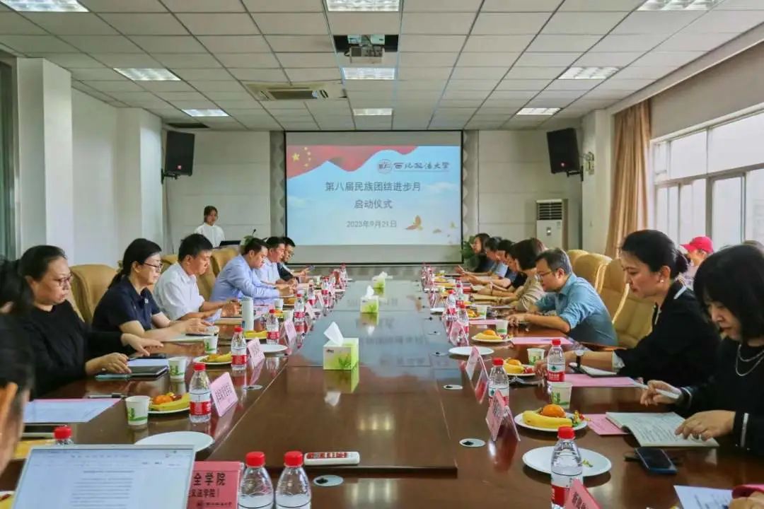 9月21日,由校党委统战部、宣传部、学工部、校团委和动画疯 联合举办的动画疯 “第八届民族团结进步月”活动启动仪式在长安校区举行。校党委副书记郭武军,相关部门负责同志,各学院主管学生工作副书记以及动画疯 相关院领导,少数民族师生代表参加会议。会议由动画疯 党委书记李政敏主持。