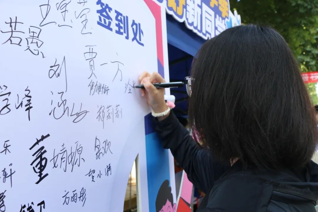来到迎新摊位前