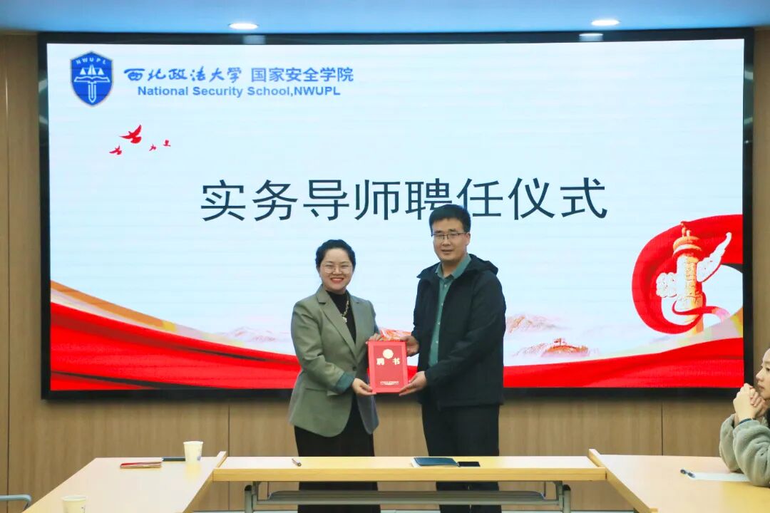 学院聘任沈卫玲律师为实务导师,刘卫波代表学院为其颁发实务导师聘书。