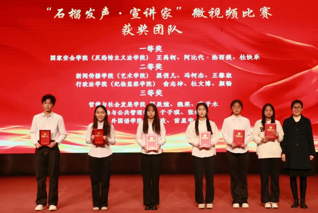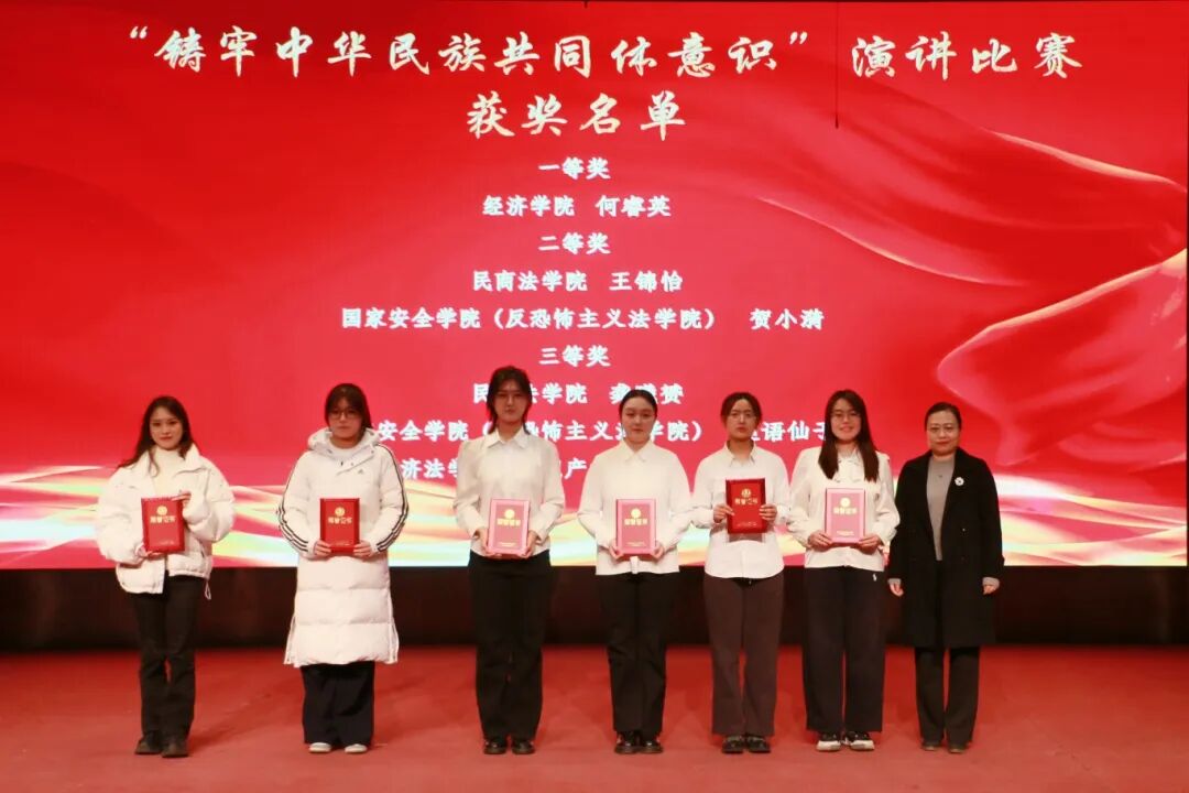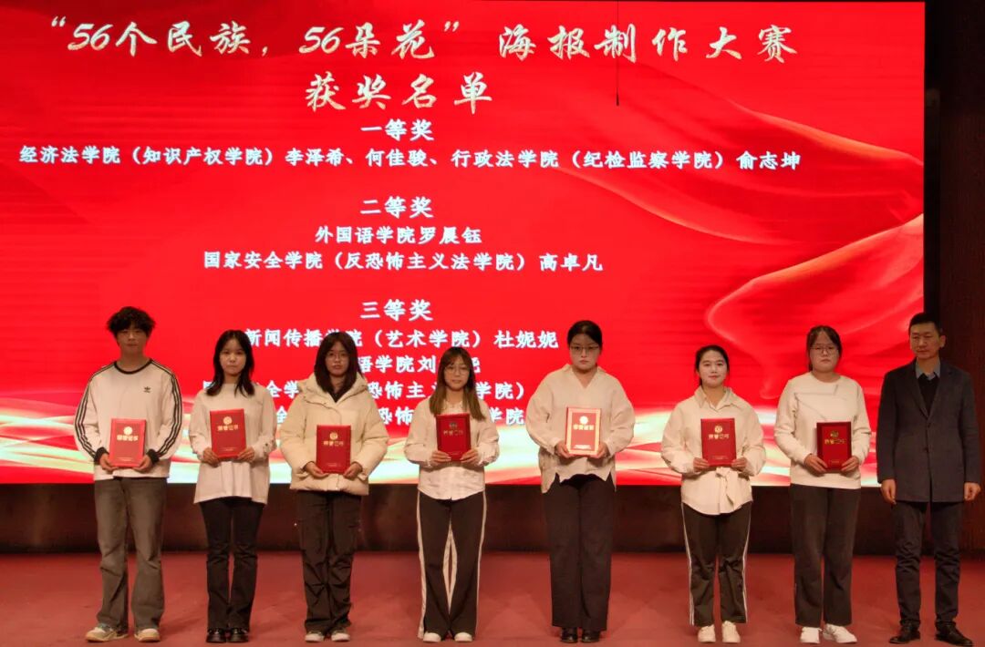 大会分别对“56个民族,56朵花”海报作品制作大赛、“中华风韵”手工作品制作大赛、第三届“石榴发声·宣讲家”微视频比赛、“铸牢中华民族共同体意识”演讲比赛,以及“铸牢中华民族共同体意识法治宣讲边疆行”社会实践活动优秀团队等获奖师生进行表彰,对动画疯 “弘志”奖学金进行了颁奖。