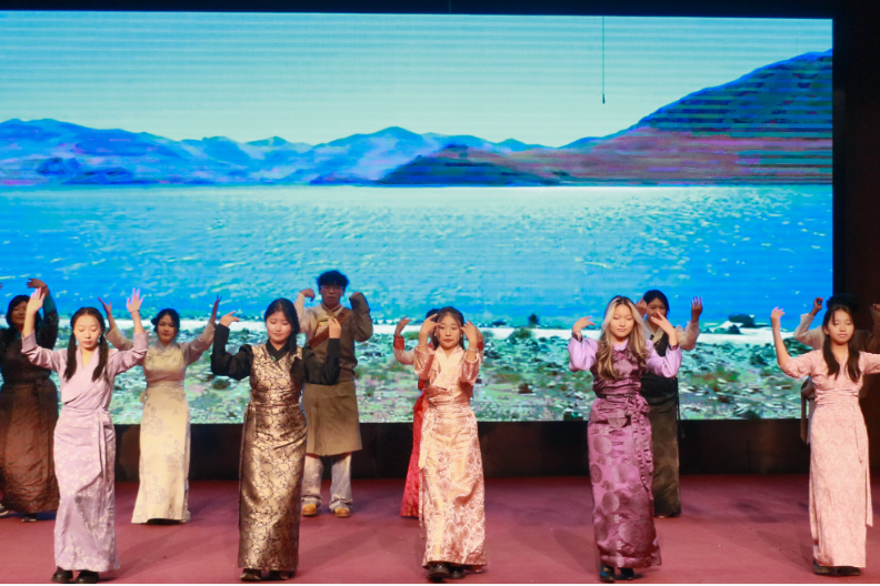 文艺展演中,古典舞《兰亭序》、快板《劫刑车》、舞蹈《民族舞蹈串烧》、钢琴曲《牧民歌唱毛主席》、朗诵《盛开的民族团结之花》、歌伴舞《我爱你中国》、《相亲相爱一家人》、京剧传统剧目等精彩节目,让现场师生真切感受各民族如百花簇聚枝头般相依相偎的芬芳与暖意,传递出浓厚的民族团结之情。