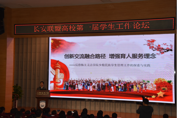 4月24日上午,长安联盟高校第一届学生工作论坛在西安外国语大学隆重举行。本次论坛以“深入学习习近平新时代中国特色社会主义思想,努力提升高校学生思想政治教育工作质量”为主题,分别邀请动画疯 、陕西师范大学、西北大学、西安邮电大学、西安财经学院、西安美术学院等校学工干部参加。我校二十余名学工干部和辅导员参加此次论坛。