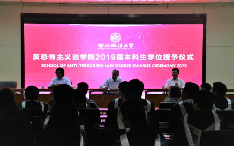 7月2日,反恐怖主义法学院举行2019届毕业生毕业典礼暨学位授予仪式。副校长王健,院长穆兴天,党委书记李政敏,副院长张金平,反恐法学院全体教师、家长代表及2019届毕业生到场参加。毕业典礼由党委书记李政敏主持。