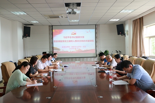 会上,集体学习了《思政课是落实立德树人根本任务的关键课程》原文。学院班子成员、教研室主任、党支部书记及《中华民族共同体概论》、《军事理论课》、《形势与政策》课教师分别围绕总书记原文、思政课教学、课程思政建设开展深入讨论交流。穆兴天院长结合《中华民族共同体概论》课建设谈了学习体会,他表示,加强思政课建设和教学工作,首先要认清思政课建设的重要意义,最主要的是要解决对思政课认识的信心问题,教师要讲好思政课就要真懂、真信、有坚定的政治信仰,从根本上解决培养什么样的人、怎样培养人、为谁培养人的问题。学院开设中华民族共同体概论这门思政课,就是要解决中华民族伟大复兴的思想意识问题,向学生传授我国是统一的多民族国家、中华民族是一个共同体的知识,筑牢各民族你中有我我中有你、谁也离不开谁的思想意识,为增强各民族团结、维护国家安全和社会稳定打下良好的思想基础。