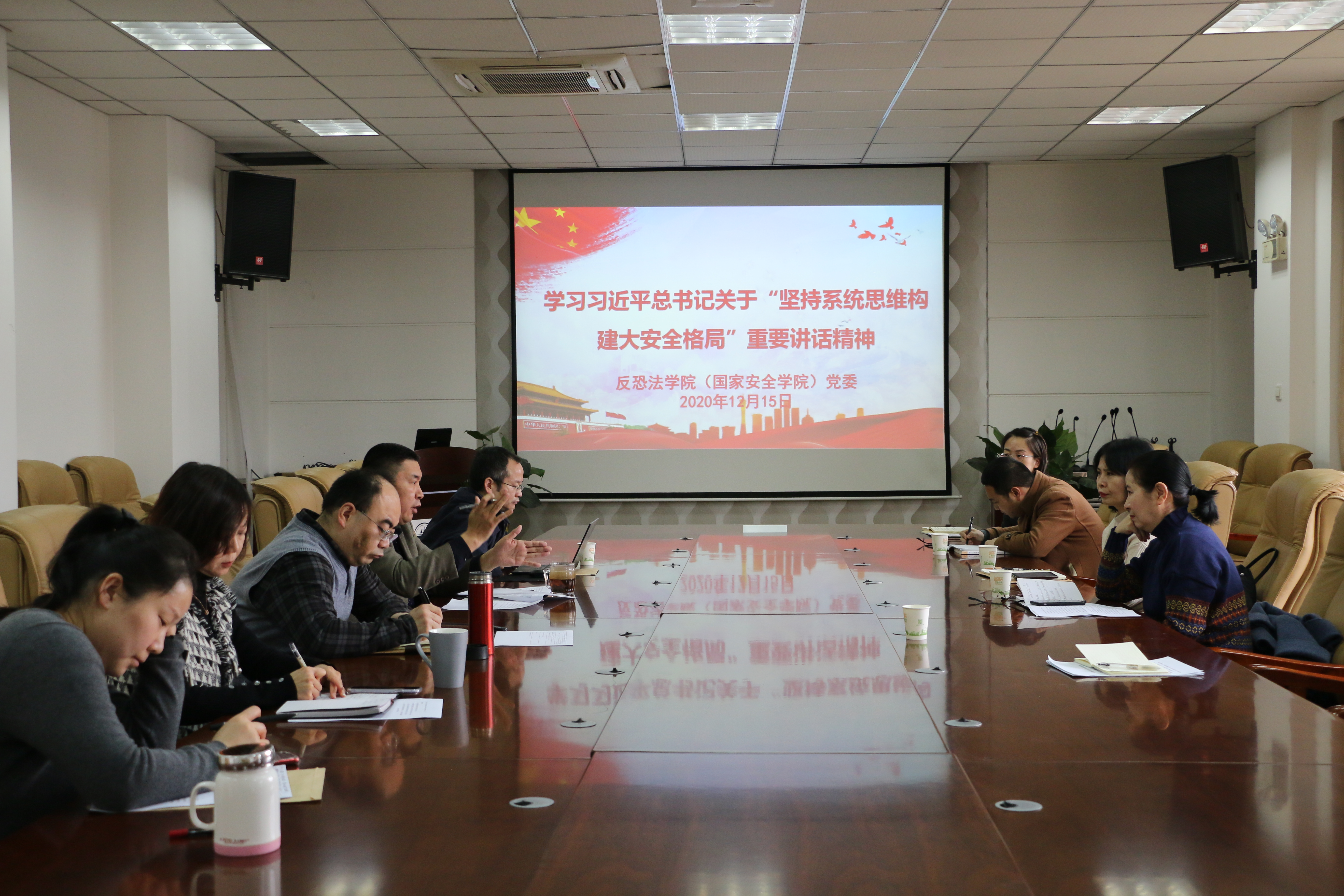 党委书记李政敏对进一步深入学习贯彻落实工作提出四点要求,一是要组织各教研室、各学生班级广泛深入学习,学深悟透习近平总书记关于国家安全、教育的重要论述,深刻领会“坚持系统思维构建大安全格局”重要讲话精神和中央关于深化新时代教育评价改革的重大意义,明确工作学习方向目标;二是要坚持问题导向,对标教育评价方案要求和构建大安全格局要求,探索制定国家安全领域学科建设、科学研究、教学、教材建设、师资队伍和人才培养等工作评价体系;三是针对学科特点和科研成果发布实际情况,尽快与相关部门协调沟通,积极争取将学院智库成果评价纳入“特殊领域教师科研专门评价”范畴,享受相关待遇和权益;四是发挥学科特色优势,设立“习近平总书记关于‘坚持系统思维构建大安全格局’重要论述研究”专项研究课题,组织院内外专家学者深入开展理论研究,为党和国家制定总体国家安全战略和构建大安全格局提供思想智慧。