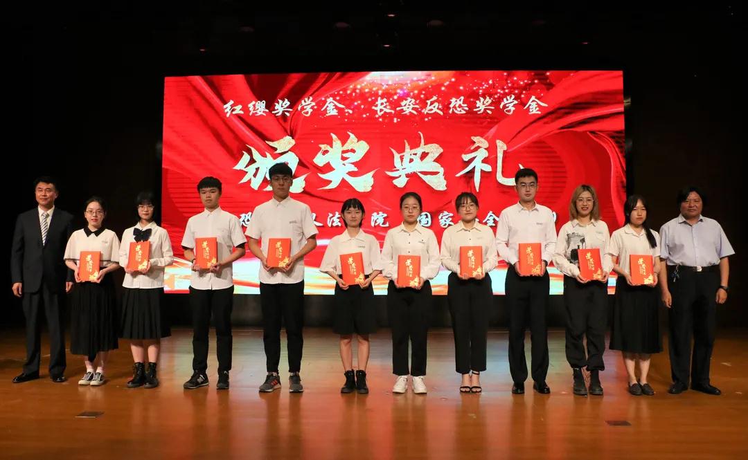 国内合作与校友工作处处长刘霖杰宣读表彰决定。校友聂峰辉、徐本万,研工部副部长赵彩如、反恐法学院穆兴天教授分别为红缨奖学金、长安反恐奖学金获奖学生颁奖。