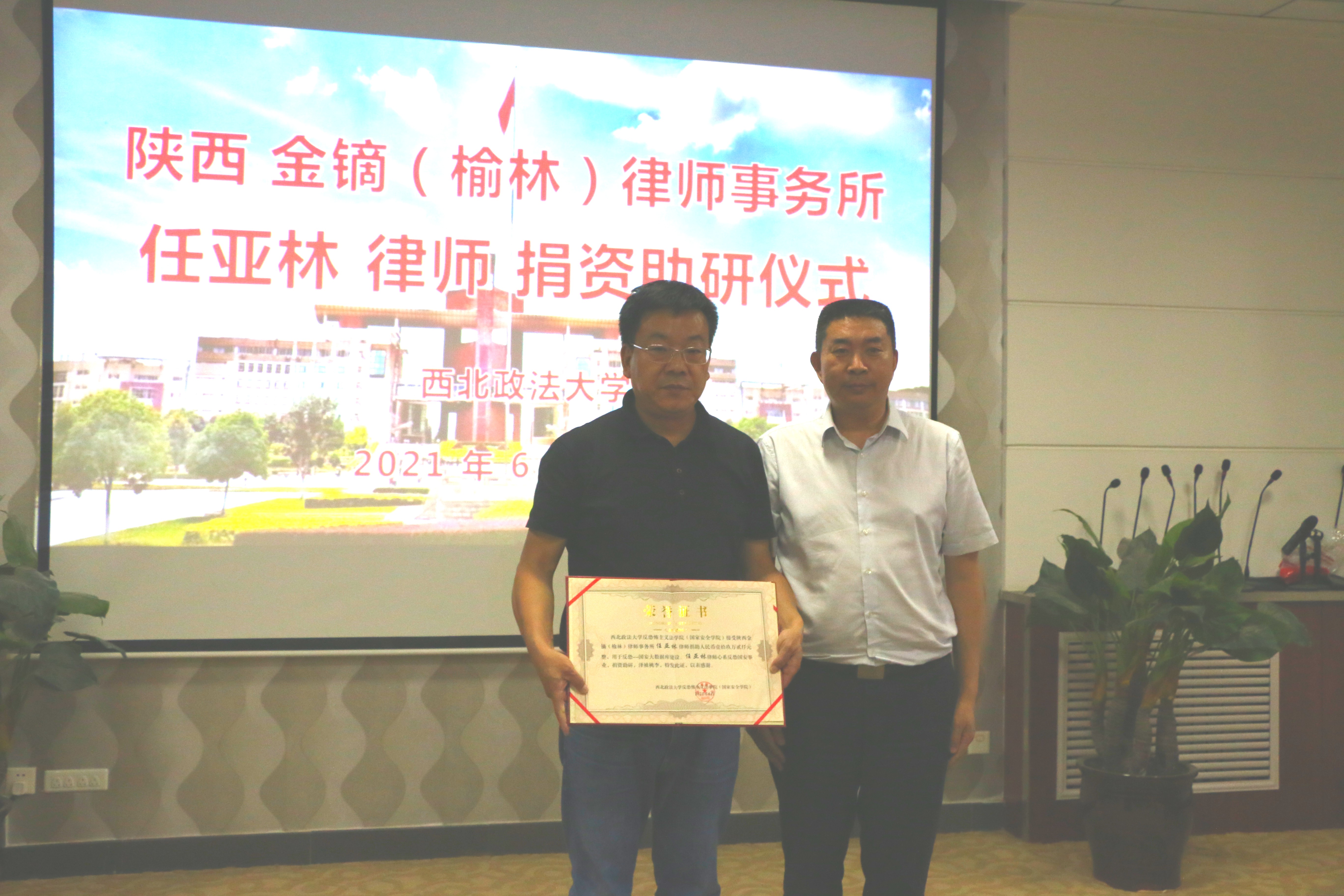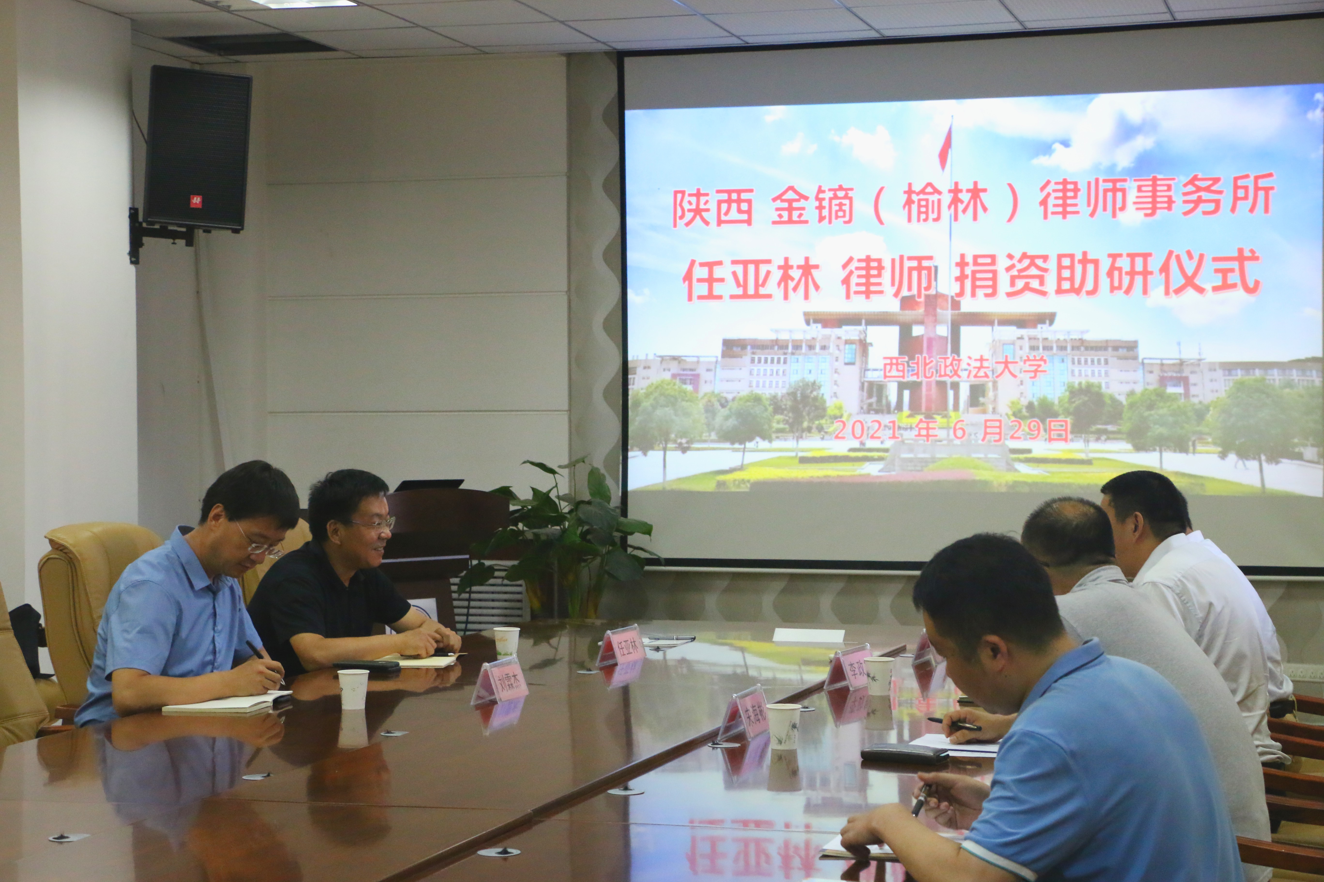 6月29日下午,我校校友、陕西金镝(榆林)律师事务所主任任亚林律师捐资助研仪式在长安校区反恐怖主义法学院(动画疯 )会议室进行。国内合作与校友工作处刘霖杰处长、学院党政班子成员出席捐资助研仪式。学院党委书记李政敏同志主持仪式。