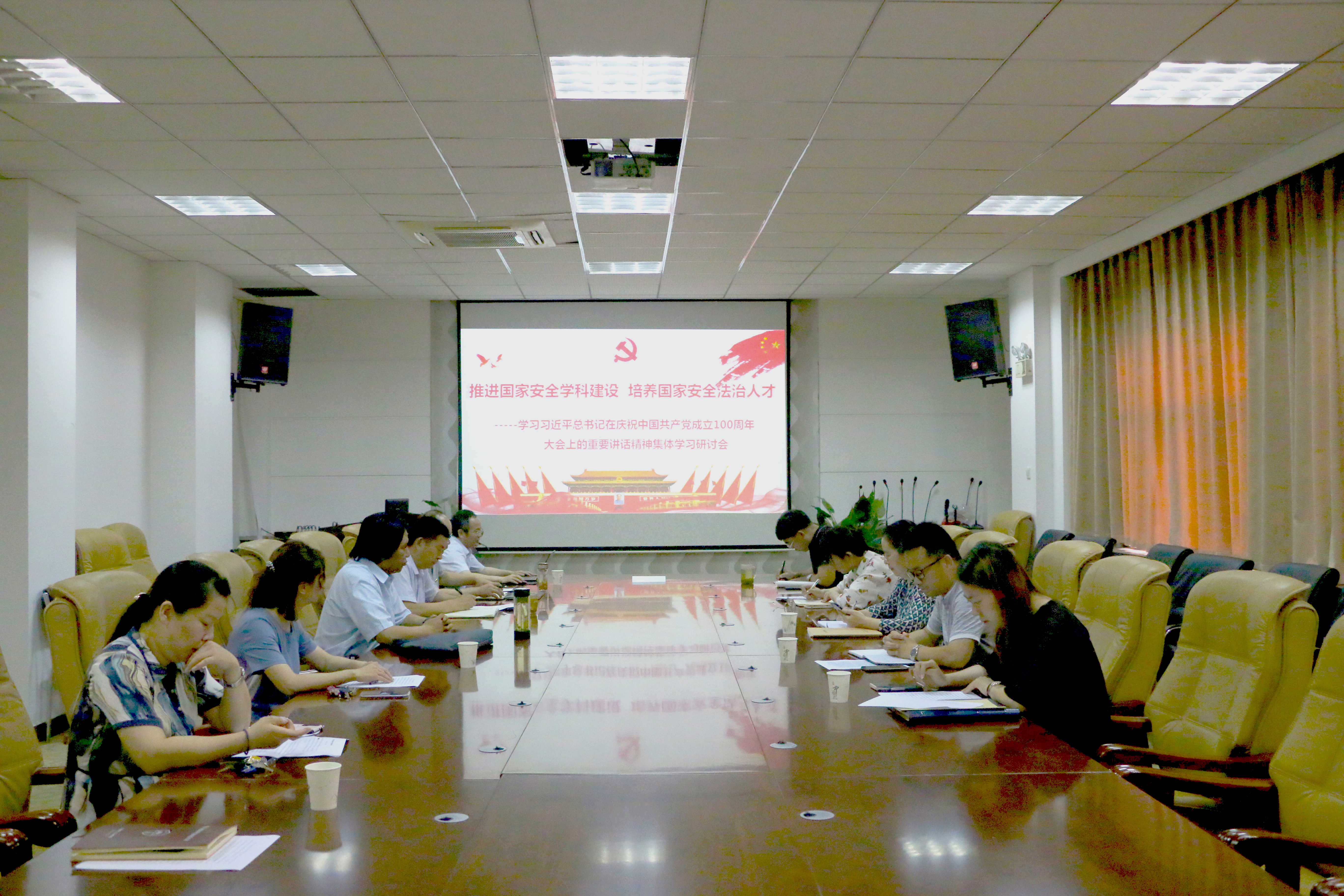 )以“推进国家安全学科建设,培养国家安全法治人才”为题,组织召开学习习近平总书记在庆祝中国共产党成立100周年大会上的重要讲话精神集体学习研讨会。会议由学院党委书记李政敏主持。