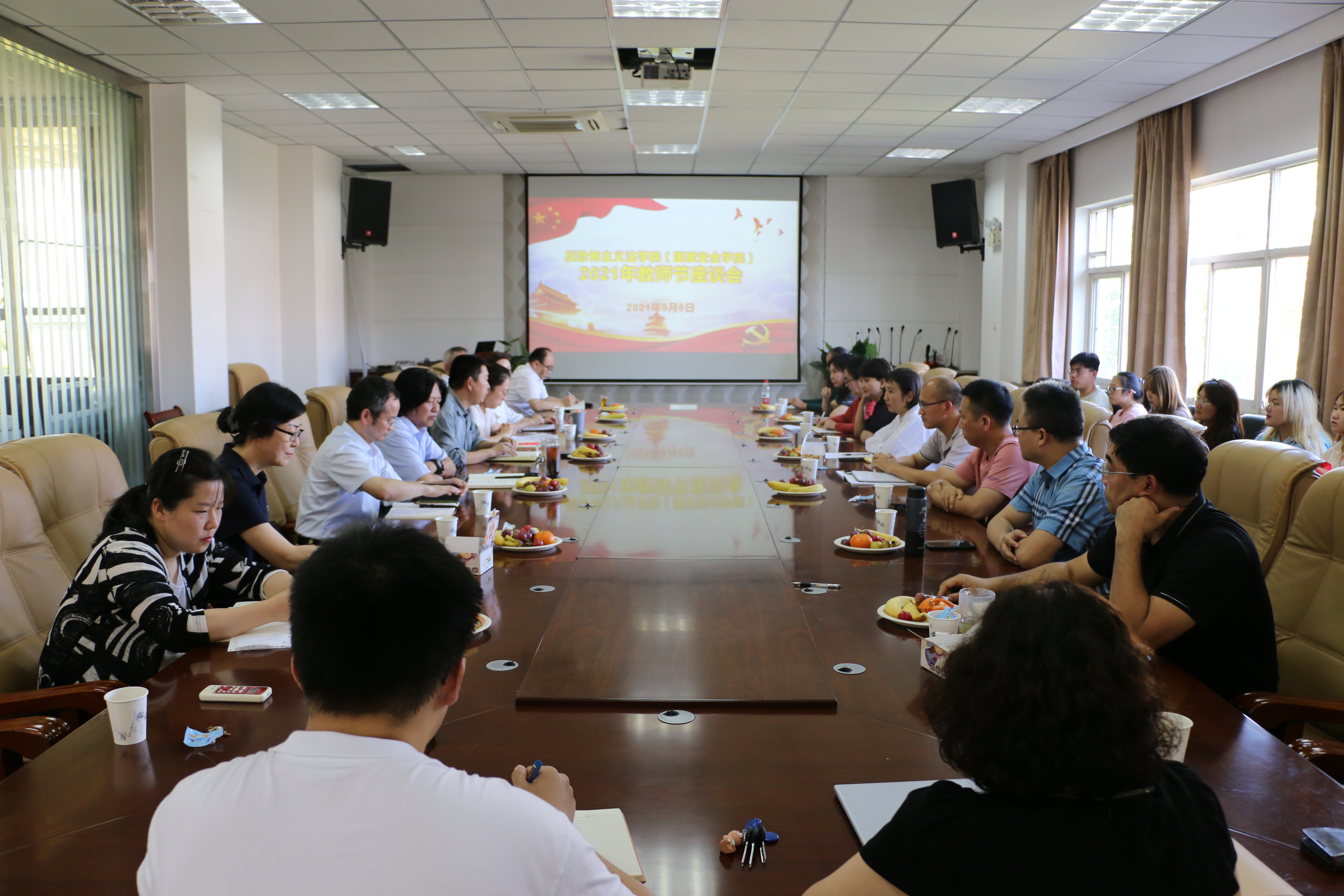 在第37个教师节来临之际,9月8日下午,反恐法怖主义法学院(动画疯 )在学院会议室召开庆祝教师节座谈会。校党委统战部部长马玲,学院领导班子成员及教师代表、学生代表30余人参加座谈会。座谈会由党委书记李政敏主持。