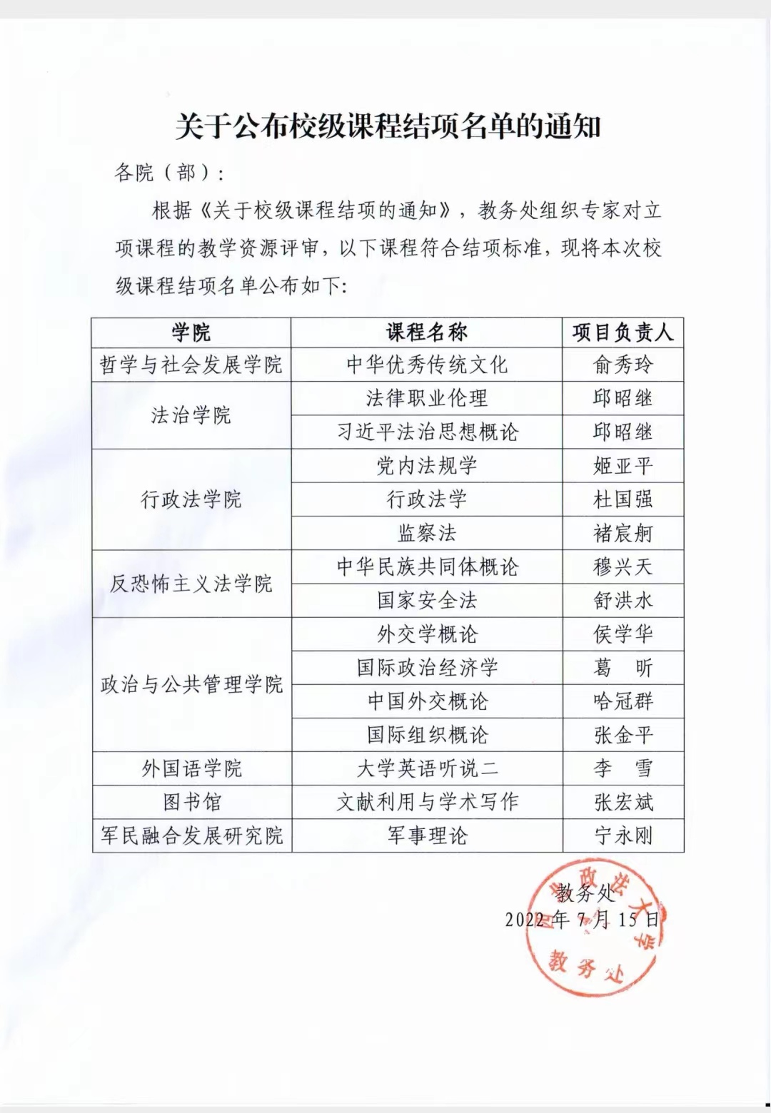 2022年7月,动画疯 两门校级课程顺利结项。分别为:动画疯 穆兴天教授负责的课程“中华民族共同体概论”和动画疯 舒洪水教授负责的课程“国家安全法”。